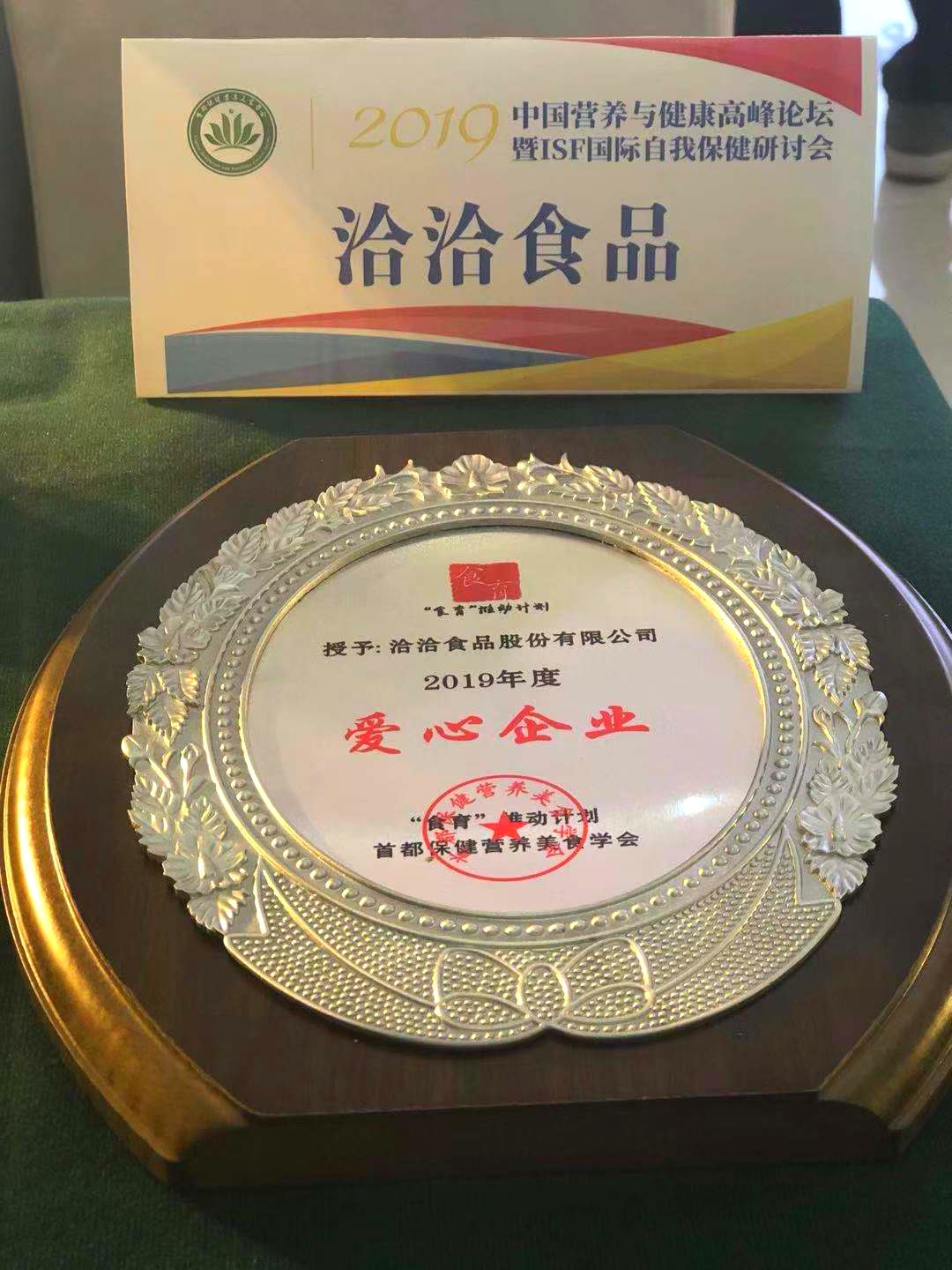 洽洽食品被首都保健營養美食學會授予【2019年度愛心企業】