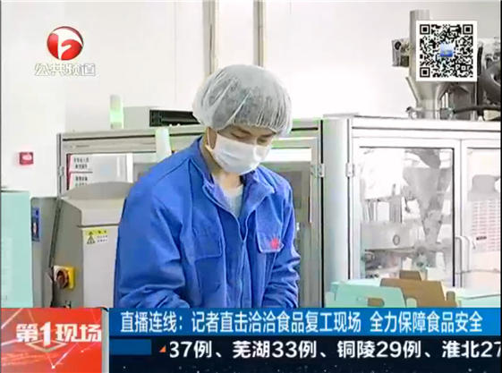 2月21日午間,安徽衛視公共頻道《第一在線》欄目直播連線。記者深入一線車間,直擊洽洽食品復工現場。洽洽做好疫情防護,全力保障食品安全!